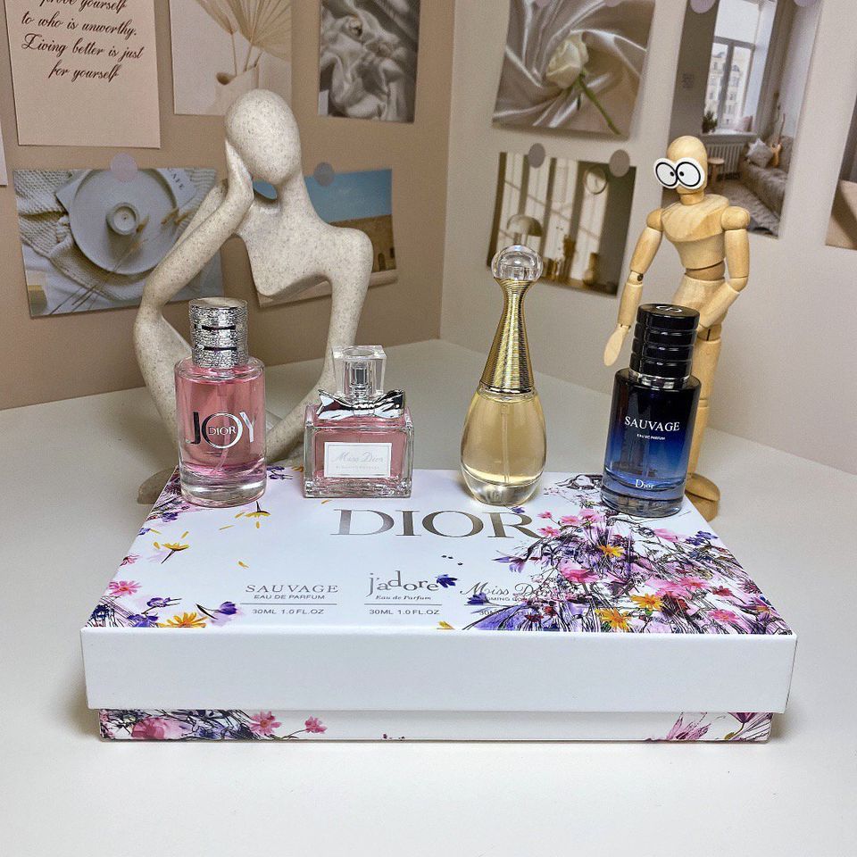 ✨Discover the essence of elegance with the **Miss Dior 4-Piece Perfume Collection** 🌸 💖Featuring four iconic fragrances, each bottle captures timeless luxury and feminine charm